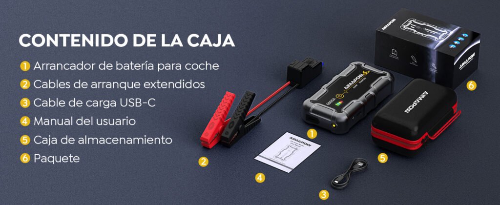 • Carga periódica: Carga el arrancador al menos una vez cada 2–3 meses, incluso si no lo has utilizado. Esto asegura que siempre esté listo para emergencias.