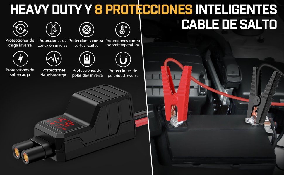 Otro de los beneficios más valorados es su sistema de protección avanzada, que hace que usarlo sea seguro incluso sin conocimientos técnicos. Las pinzas inteligentes impiden errores comunes como la conexión invertida, y el dispositivo gestiona automáticamente la corriente para evitar sobrecalentamientos o cortocircuitos. En definitiva, ofrece una experiencia de uso sencilla, segura y sin complicaciones, apta para cualquier conductor.