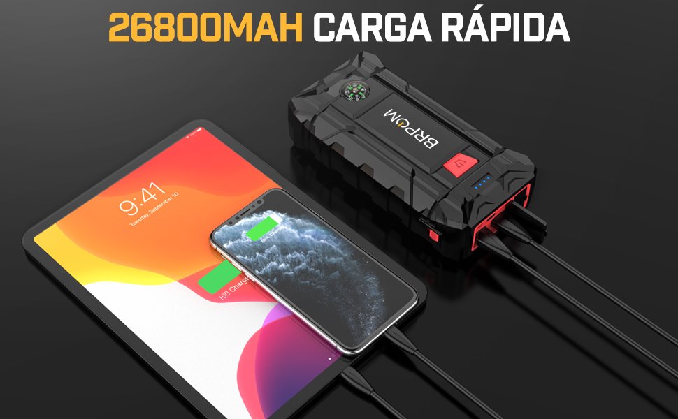 - Arrancador de batería portátil BRPOM BM300 (6000A / 26.800 mAh)