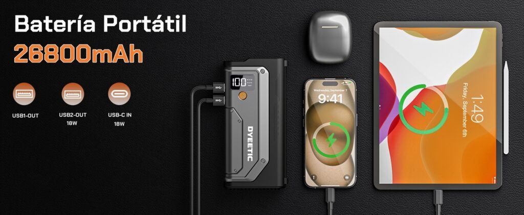 El DYEETIC D16 se presenta como una opción interesante para quienes buscan un arrancador potente pero compacto, con una excelente relación entre capacidad, rendimiento y precio. Su batería de 26.800 mAh y su pico de 6000A lo convierten en una herramienta más que capaz para arrancar coches, SUV e incluso vehículos diésel sin necesidad de asistencia externa.