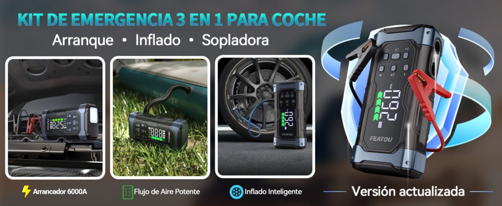 - Arrancador FEATOU V8 (6000 A, 20 000 mAh)