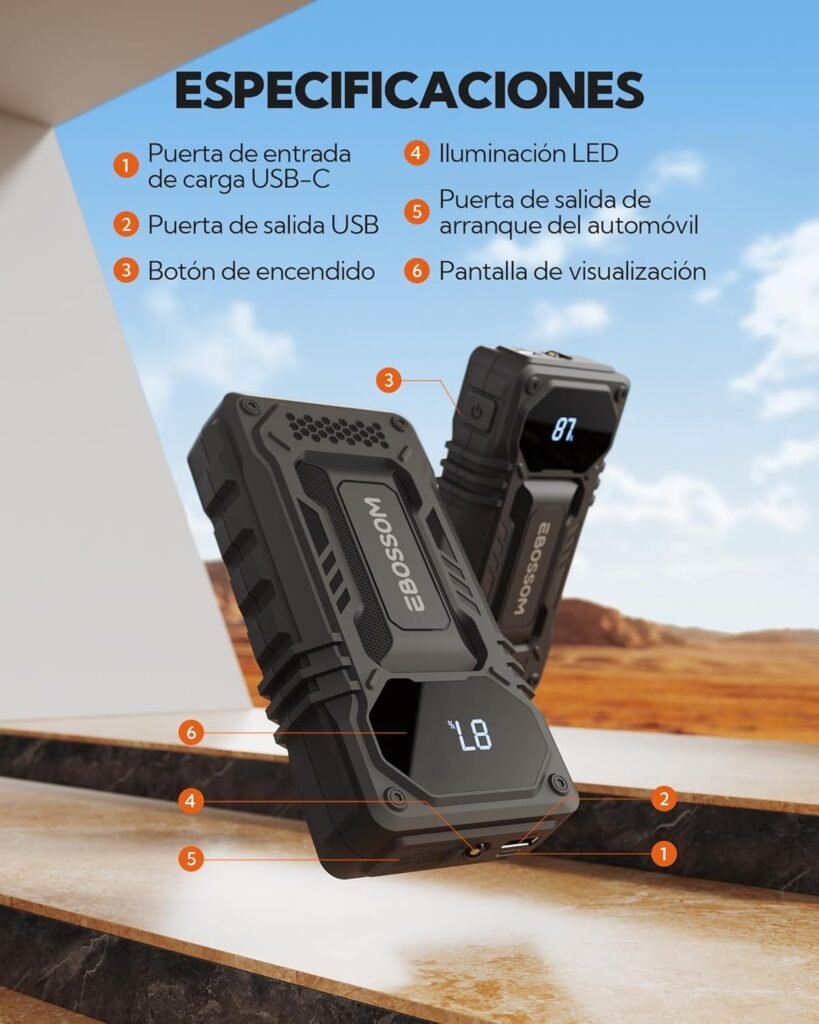 Si buscas un dispositivo compacto, fiable y fácil de usar para emergencias, el EBOSSOM JS6 es una de las opciones con mejor relación calidad-precio de su categoría. Te ofrece potencia suficiente, linterna, power bank y un tamaño perfecto para llevar siempre en el coche sin ocupar espacio.