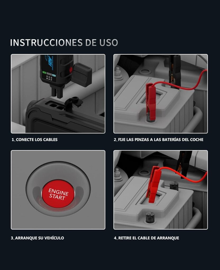 Todo está diseñado para que el uso sea seguro y sencillo, incluso si es la primera vez que manejas un arrancador.