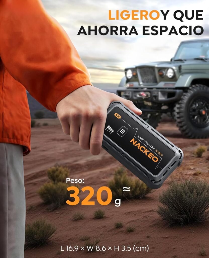 El NACKEO N20 ofrece un equilibrio muy interesante: potencia suficiente para la mayoría de vehículos personales, batería con buena autonomía, protección electrónica integral y funciones extra como linterna y carga de dispositivos. Esto lo convierte en una opción muy versátil, ideal para conductores que quieren estar preparados ante imprevistos sin invertir en un equipo excesivamente complejo o especializado.
