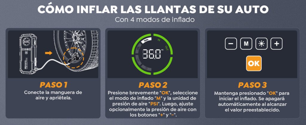 El NACKEO Star03 está pensado para ser fácil de utilizar incluso si no tienes experiencia previa con este tipo de dispositivos. Aun así, conviene seguir unos pasos básicos para garantizar un uso seguro y eficaz, tanto en la función de arranque como en la de inflado.