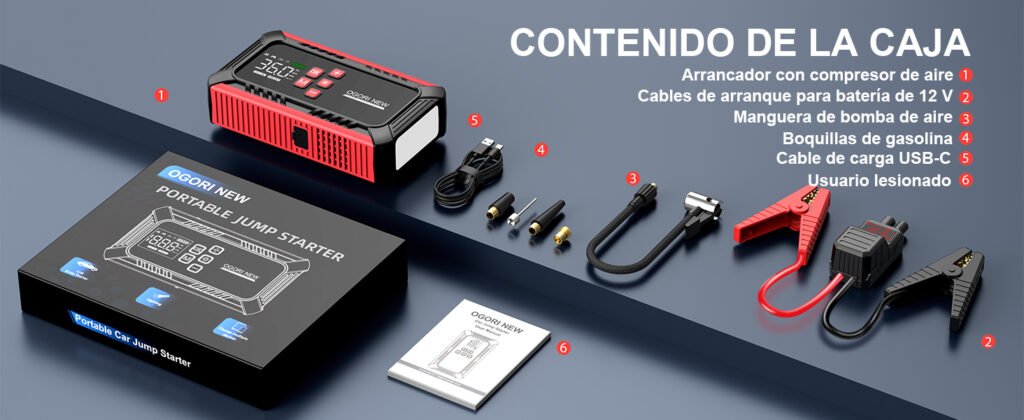 - Arrancador portátil OGORI NEW B090 con compresor de aire
