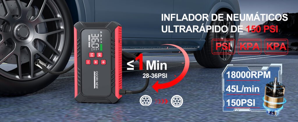 En esta reseña vamos a analizar en detalle el rendimiento real, sus funciones, ventajas y posibles limitaciones del OGORI NEW B090. Si estás buscando un arrancador con compresor que te permita resolver varias situaciones con un solo aparato, aquí encontrarás toda la información necesaria para decidir si es el modelo adecuado para ti.