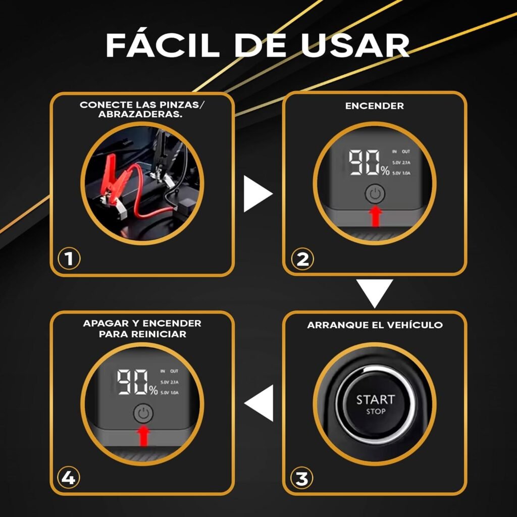 Gracias a su capacidad de arranque, el dispositivo puede proporcionar la energía necesaria para poner en marcha distintos vehículos de 12 V. Esto lo convierte en una herramienta útil para conductores que buscan una solución sencilla ante problemas de batería.