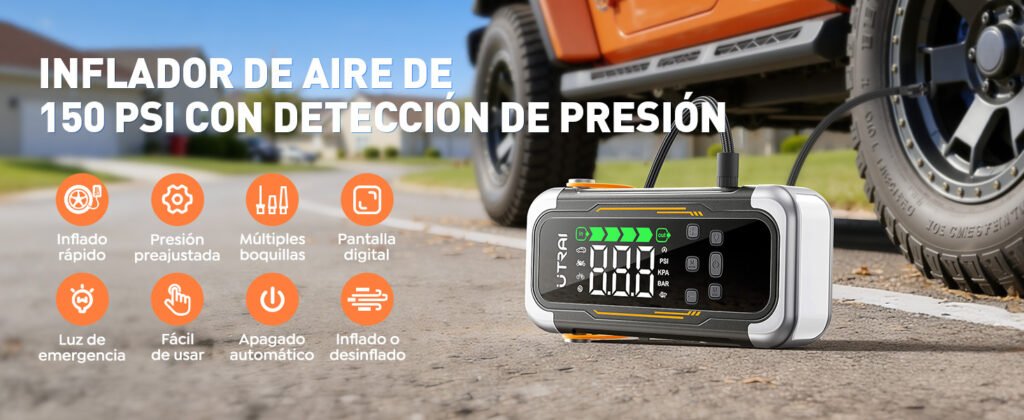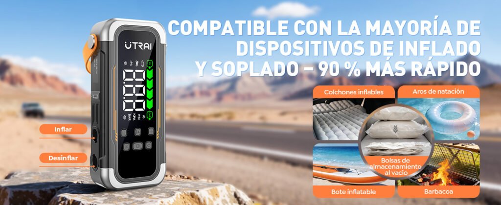 Dentro de su gama es posible encontrar arrancadores más pequeños y ligeros, pensados para conductores que buscan una solución sencilla para el día a día. Estos equipos priorizan la portabilidad y la facilidad de almacenamiento, siendo ideales para turismos y uso urbano. UTRAI también dispone de modelos que incorporan inflador de neumáticos, pensados para quienes quieren un equipo más completo en el coche. Estos dispositivos permiten resolver tanto problemas de batería como de presión en las ruedas sin depender de herramientas externas.