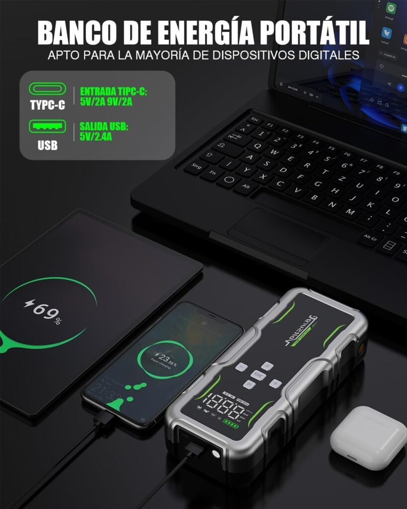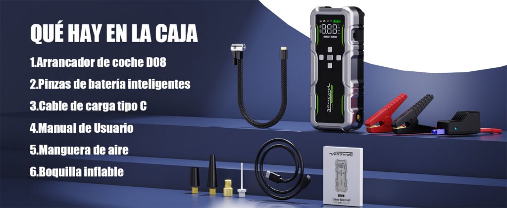 En esta reseña analizaremos el rendimiento del VoltSurge D08, sus características principales, sus ventajas reales en carretera y los puntos en los que destaca frente a otras opciones multifunción. Si buscas un dispositivo capaz de combinar alta potencia, compresor integrado y funciones adicionales en un formato portátil, aquí descubrirás si el VoltSurge D08 es la herramienta que se adapta a tus necesidades.